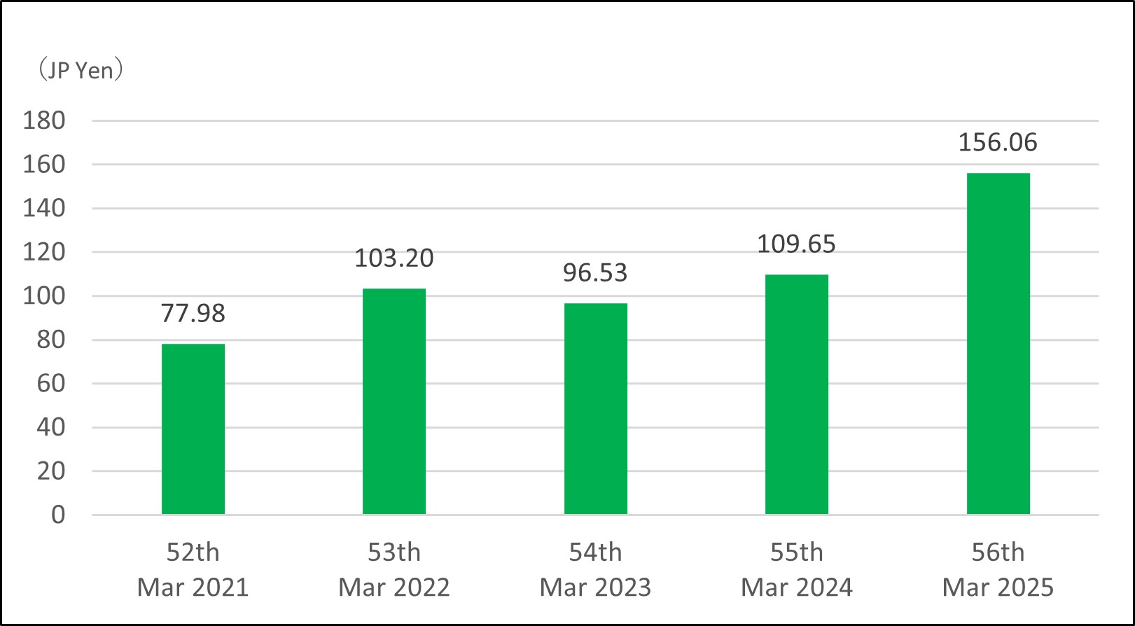 | EPS (JP Yen) | 77.98 | 103.20 | 96.53 | 109.65 | 156.06 |