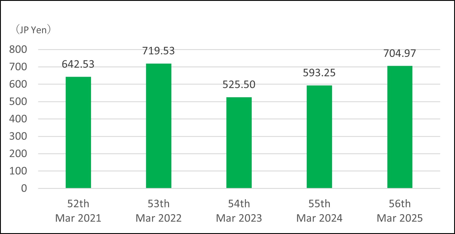 | Book Value per Share (JP Yen) | 642.53 | 719.53 | 525.50 | 593.25 | 704.97 |