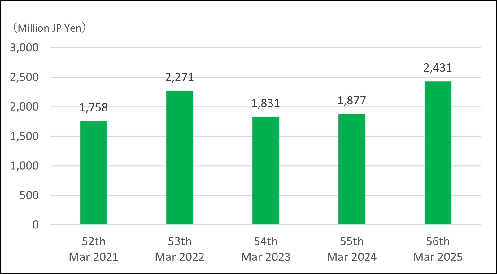 | Ordinary Profit | 1,758 | 2,271 | 1,831 | 1,877 | 2,431 |
