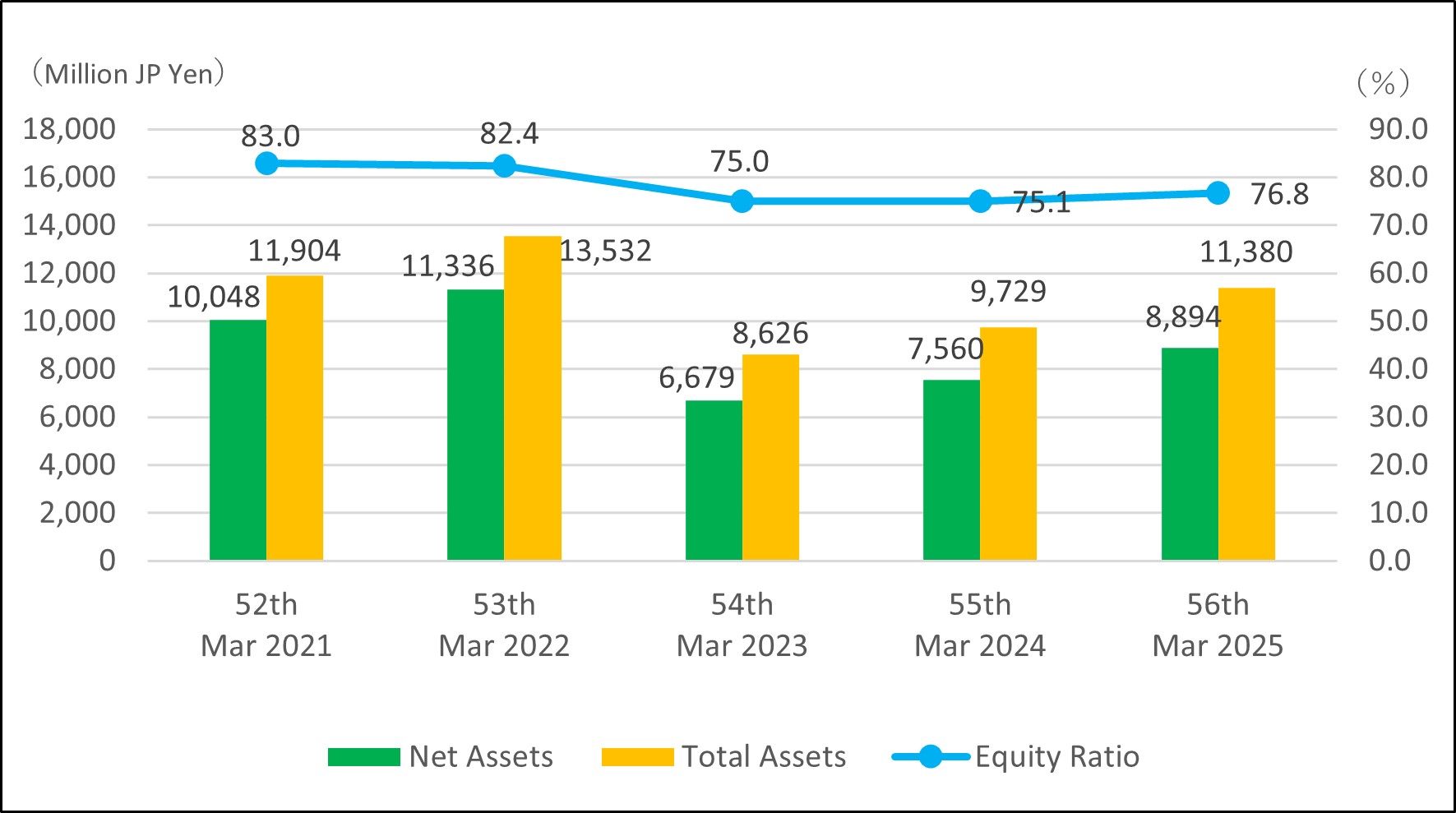 | Equity Ratio | 83.0 | 82.4 | 75.0 | 75.1 | 76.8 |
